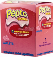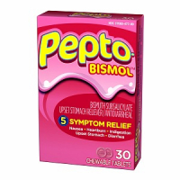 Anti-Diarrheal Anti-Diarrheal Relief (50 Pouches of 1 Caplet) $17.95 Pepto Bismol Chewables (30ct) $8.70 Pepto Bismol Swallowable Caplets (25 Pouches of 2 Caplets) $25.95
